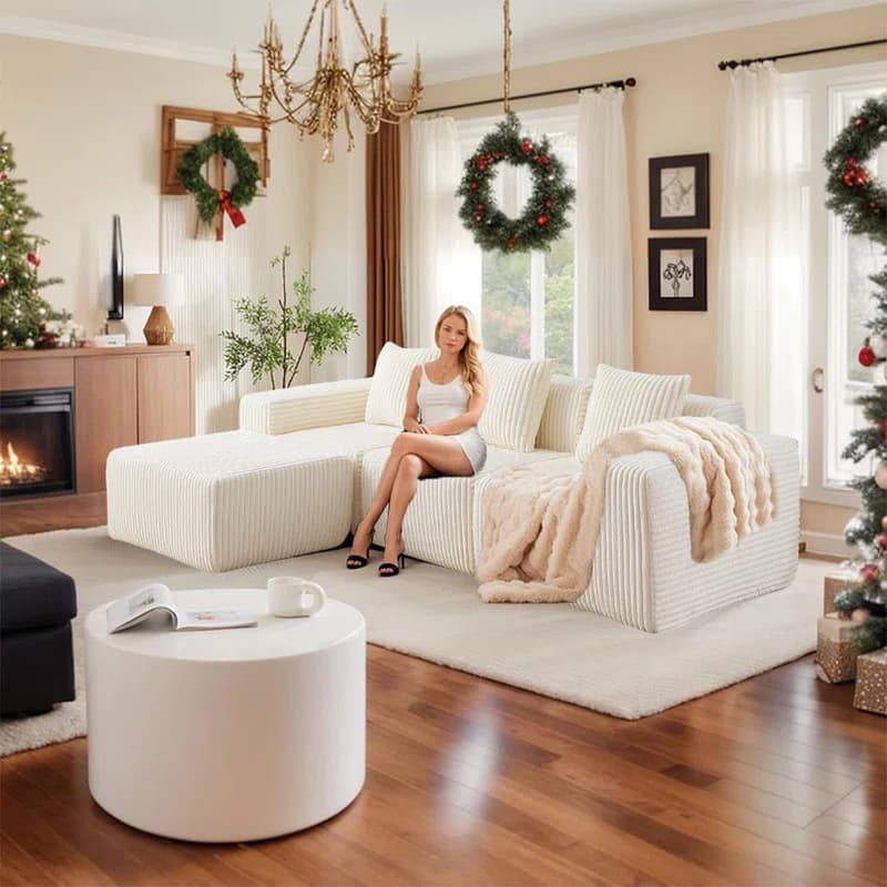 Why we love it: Deep seats, plush linen/chenille fabric, and an L-shaped build make this both stylish and family-friendly. It ships fully modular, so you can expand or reconfigure over time.