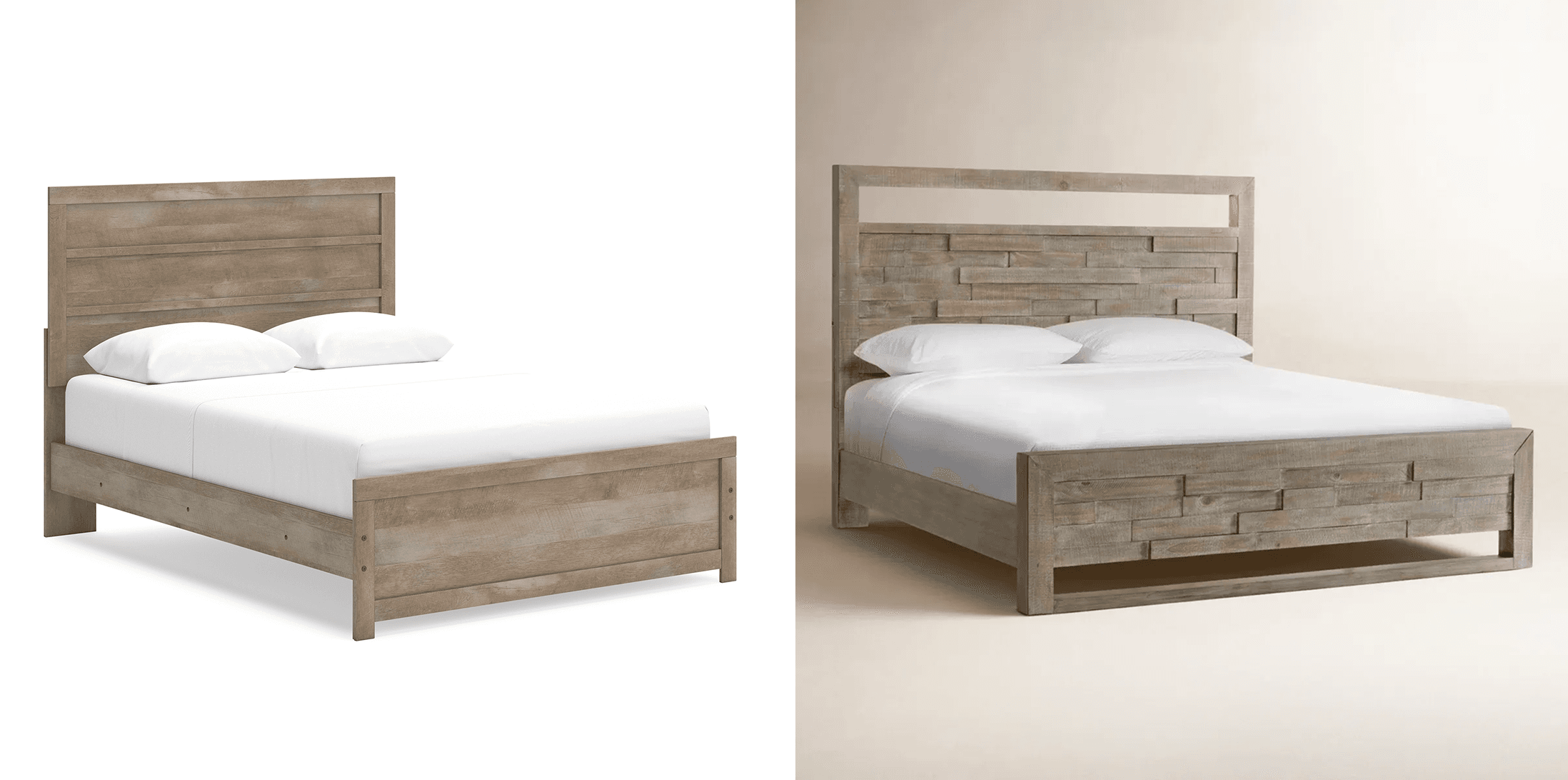 A $249.99 queen bed offers a similar warm, calming presence as a $1,749 solid wood design. Both feel serene and modern, which makes this dupe especially appealing for anyone creating a minimalist bedroom retreat.